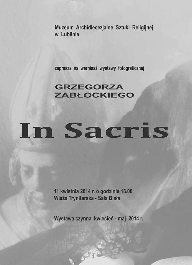 Zapraszamy na wernisaż wystawy fotografii Grzegorza Zabłockiego pt. „In Sacris”. 11 kwiecień 2014 r. o godzinie 18:00 w Muzeum Archidiecezjalnym Sztuki Religijnej w Lublinie.