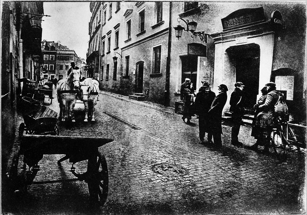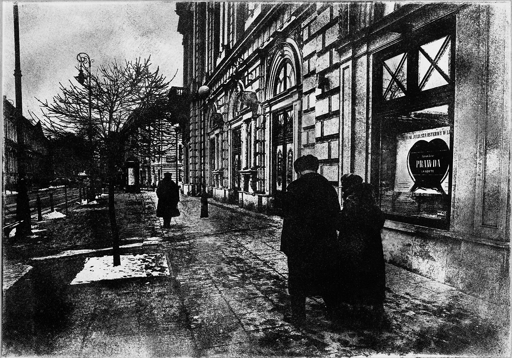 …Taka postawa wyklucza pośpiech i wręcz zmusza do skupienia w czasie pracy. Siłą rzeczy fotograf kontempluje rzeczywistość, wybierając miejsca które jego zdaniem (po obróbce) przywracają klimat miasta z przed stu lat. I takie właśnie działanie, ta mistyfikacja odbiera tym pracom walor fotograficznego dokumentu.